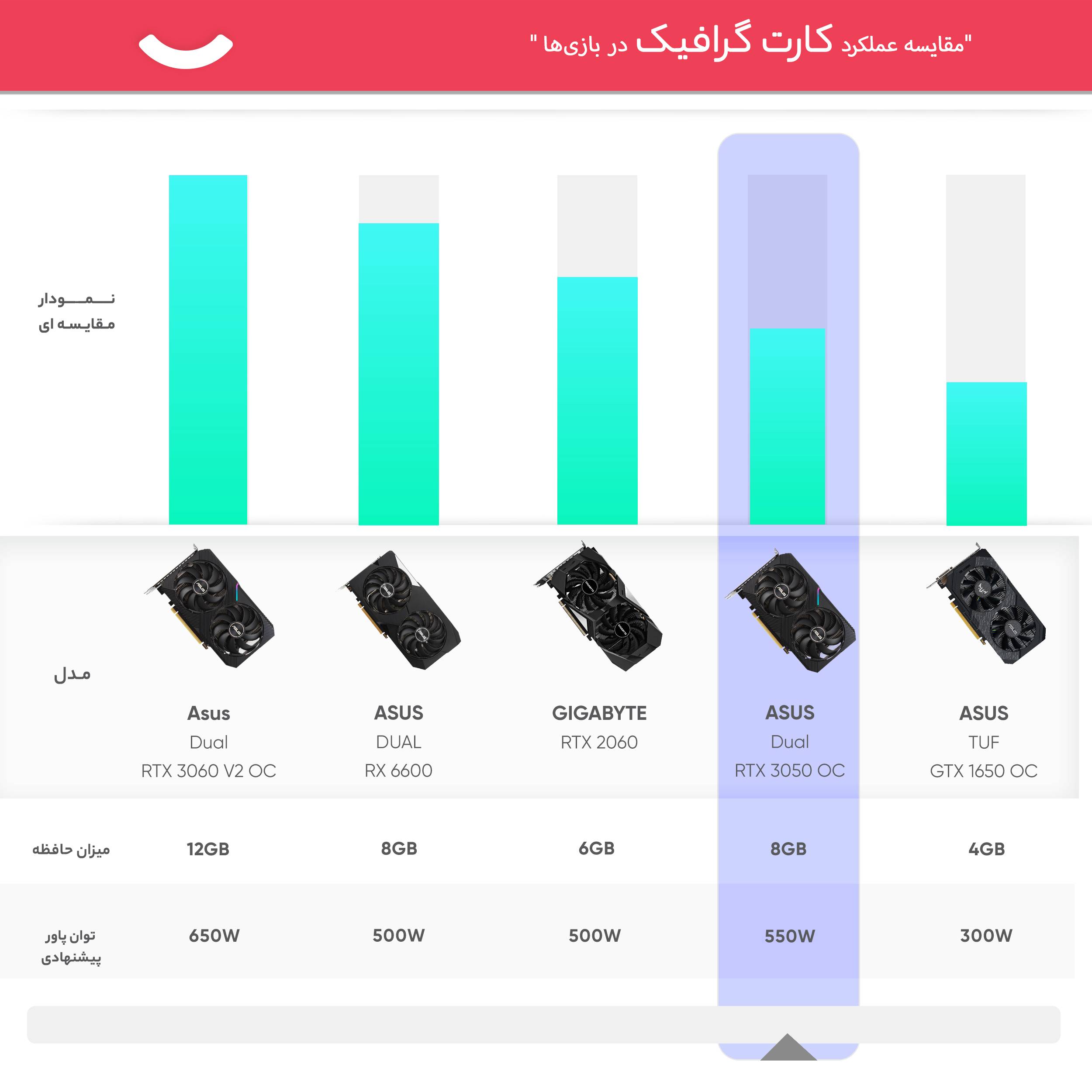 کارت گرافیک ایسوس مدل Dual GeForce RTX 3050 OC کارت گرافیک Asus Dual GeForce RTX 3050 OC یکی از محصولات جدید و قدرتمندی است که به تازگی وارد بازار شده است. این کارت گرافیک با قیمت مناسب و عملکرد بالا، توانسته است توجه بسیاری از کاربران را به خود جلب کند. این محصول با داشتن حافظه 8 گیگابایت و امکانات متنوع، یک گزینه مناسب برای افرادی است که به دنبال بهبود کارایی و کیفیت تجربه بازی و گرافیکی هستند. مشخصات کارت گرافیک ایسوس dual rtx 3050 oc edition 8gb این کارت گرافیک ایسوس دارای قدرت پردازش گرافیکی بالا بوده و برای اجرای بازیهای رایانهای با کیفیت بالا و واقعیت مجازی مناسب است. همچنین، این مدل از کارت گرافیک ایسوس دارای فناوریهای پیشرفتهای مانند رابط PCI Express 4.0 و پشتیبانی از رزولوشنهای 8K است. علاوه بر این، کارت گرافیک ایسوس مدل Dual RTX 3050 OC دارای حافظه GDDR6 با ظرفیت بالا و سرعت بالا است که امکان اجرای برنامهها و بازیهای حجیم را فراهم میکند. از دیگر ویژگیهای این کارت گرافیک میتوان به فن خنککننده با طراحی منحصر به فرد و قابلیت اورکلاک دهی بیشتر اشاره کرد که به بهبود عملکرد و پایداری کارت گرافیک کمک میکند.